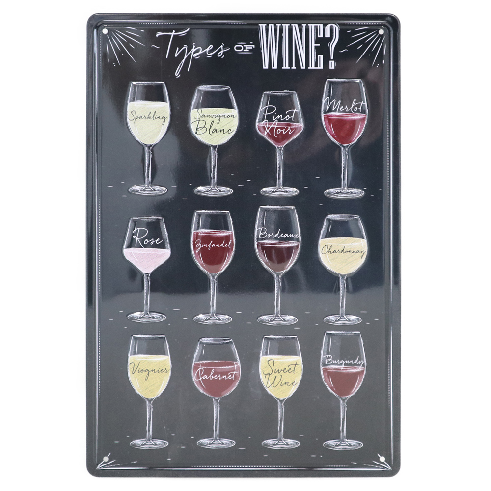 Types of Wine Retro Wandbord 30x20